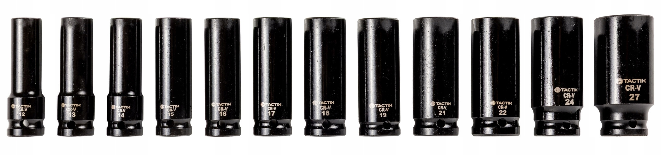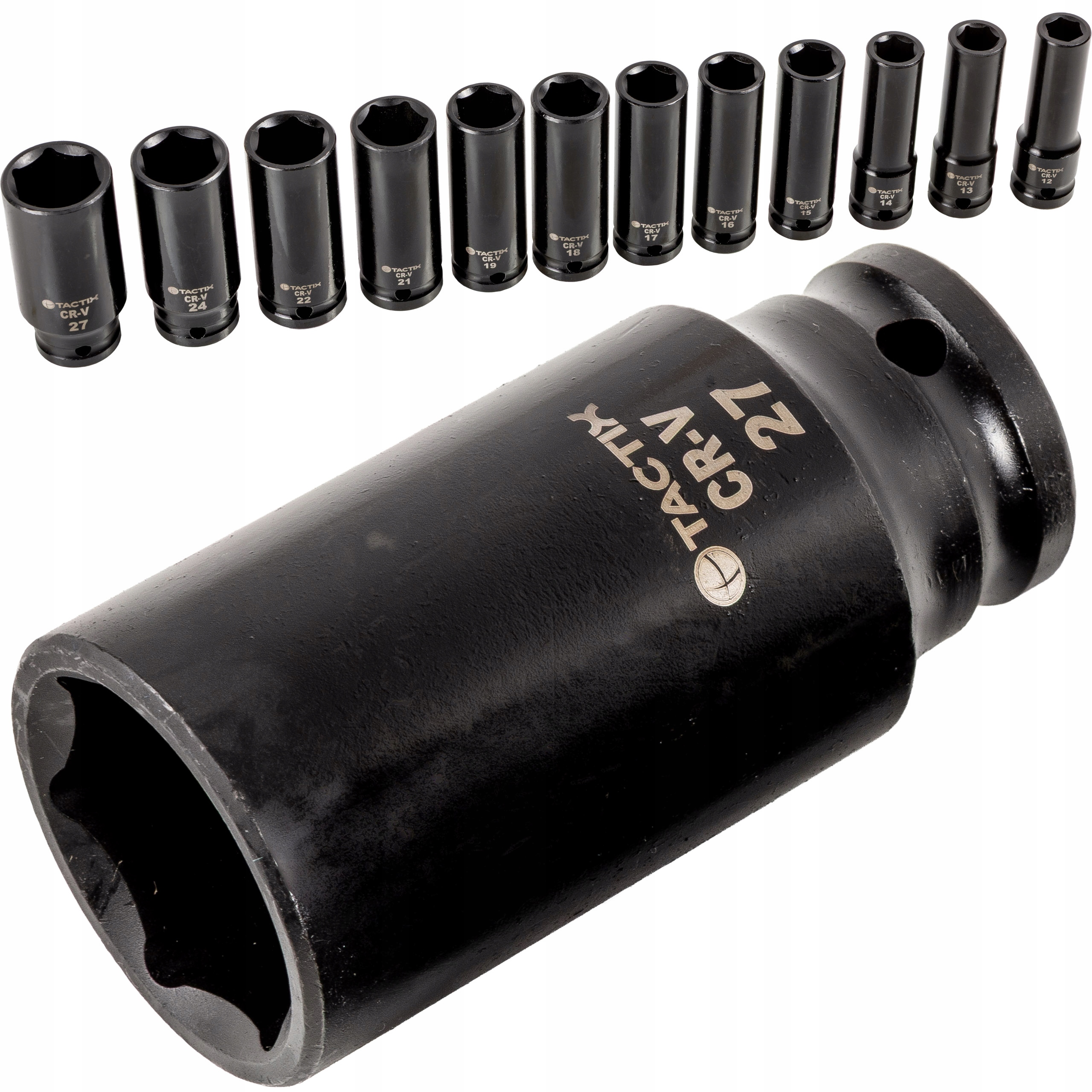 Nasadki udarowe Tactix 1/2″ – zestaw 12 sztuk (12-27 mm)