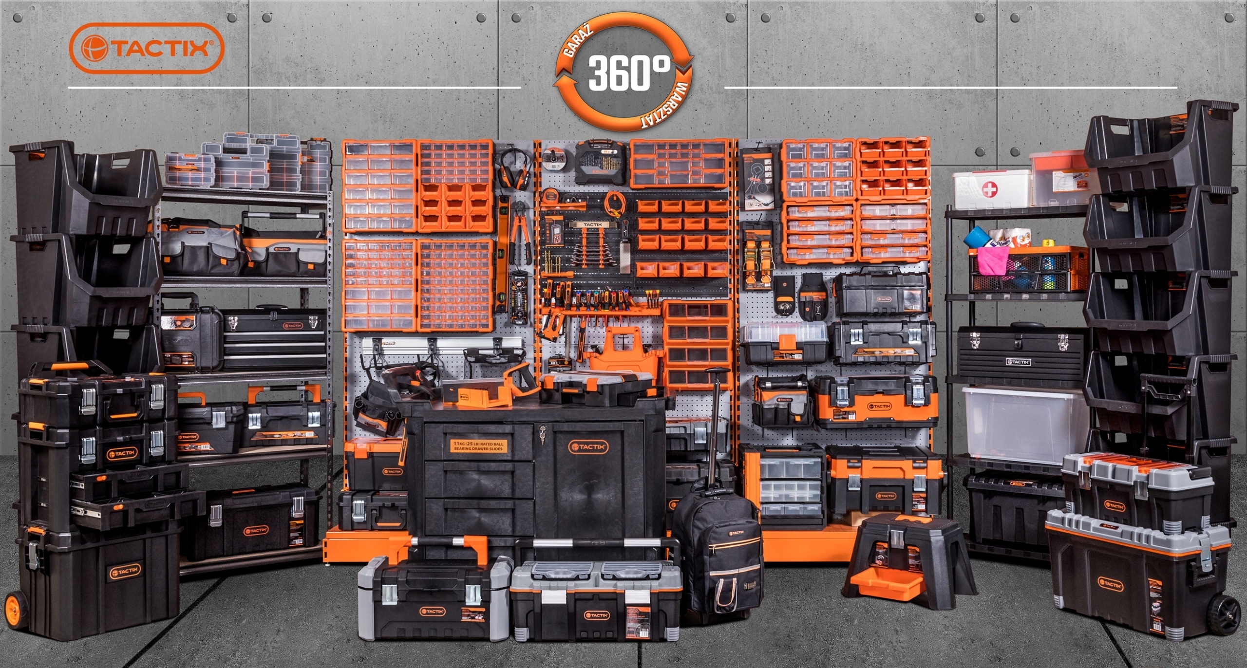 Moduły łączone są za pomocą trwałych złączy przesuwnych ABS, gwarantujących stabilność i szybkie montowanie zestawu. Produkt jest częścią globalnej linii Tactix 360º, w której dostępnych jest ponad 120 kompatybilnych elementów wyposażenia warsztatu, takich jak organizery, skrzynie, haki, uchwyty, stoły i regały.